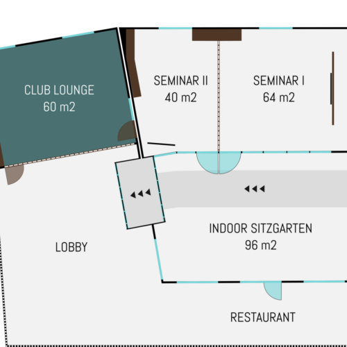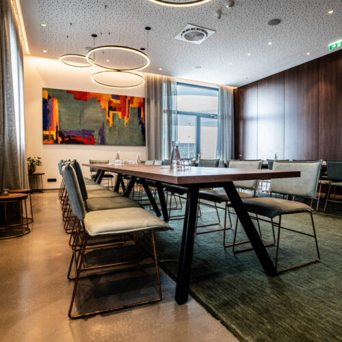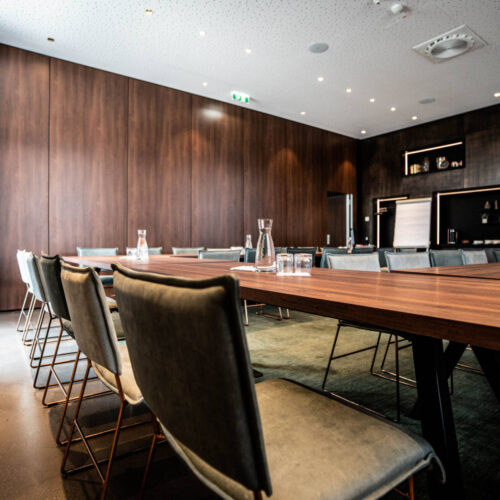 Die 60 m2 große Club Lounge wird separiert durch eine schalldichte Trennwand zum idealen Raum für Meetings, Seminare und Workshops. Der Raum ist mit einem 65″ Smart-TV und einem drahtlosen Klick & Show-Präsentationssystem (alternativ HDMI-Anschluss) ausgestattet. Zur Verpflegung stehen je nach Bedarf im Seminarraum eigene Kaffeemaschinen und Getränke bereit. Die Pausenverpflegung kann sowohl im Seminarraum selbst als auch im Indoor-Sitzgarten oder in der Hotel-Lobby bereitgestellt werden.
