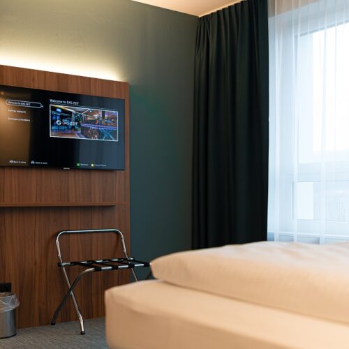 Die Ausstattung der 27m² großen Business Superior Zimmer umfasst neben einem gemütlichen Queensize Bett auch eine ausziehbares Sitzgarnitur. Das moderne Badezimmer ist mit WC, Dusche, eigenem Föhn und Handtüchern ausgestattet. Neben kostenfreiem WLAN umfasst die Ausstattung des Business Superior Zimmers einen 43 Zoll Smart TV, einen Safe für Wertsachen, sowie einen Wasserkocher für Kaffee- und Teezubereitung.